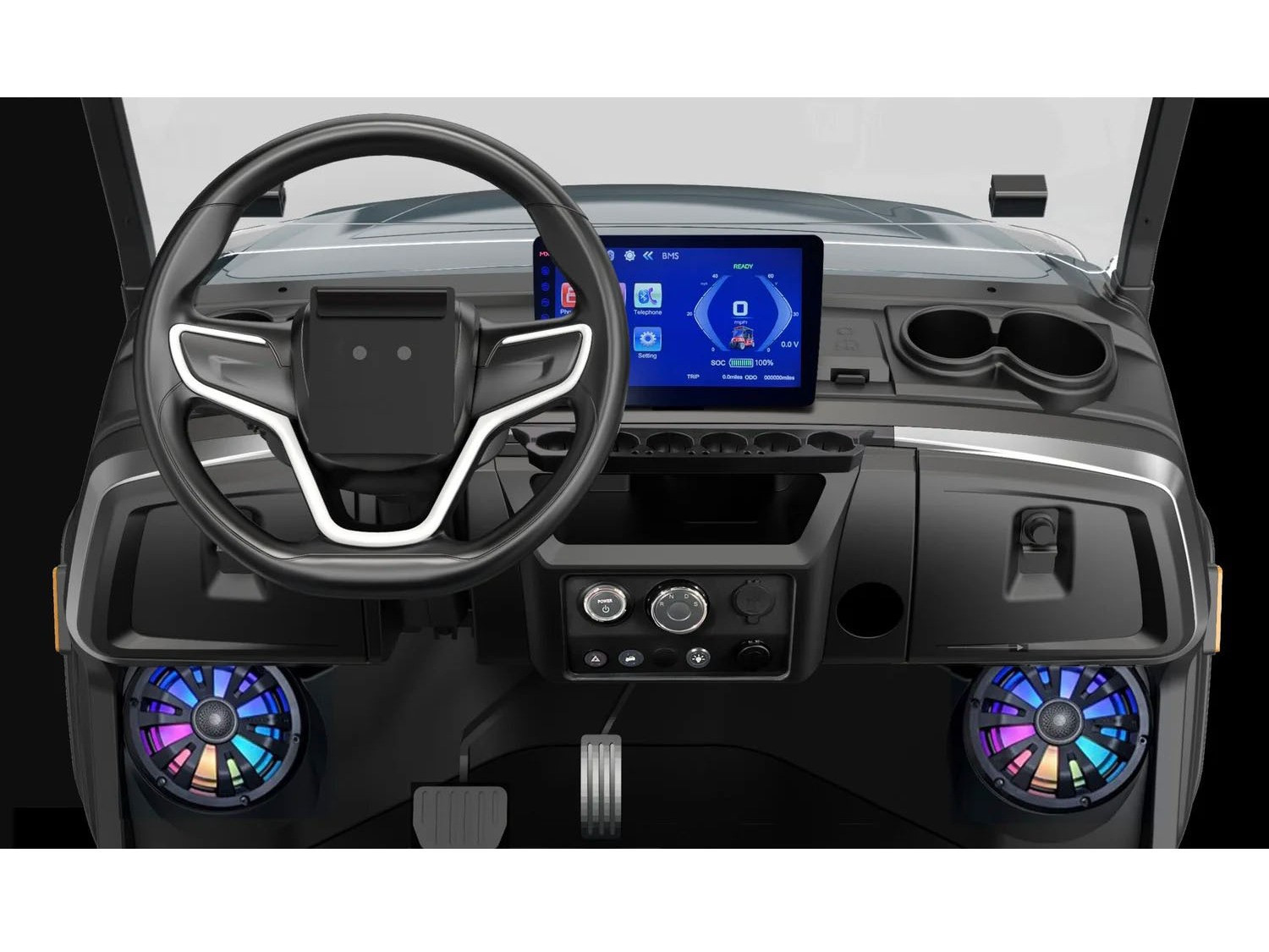 Available in seven sleek metallic colors, this cart delivers a buttery-smooth ride on 12” turf-friendly tires. With a marine-grade sound system, accent lighting, and a rear golf kit packed with coolers, sand bottles, and bag holders, the E20FX isn’t just built for golf, it’s built for glory.