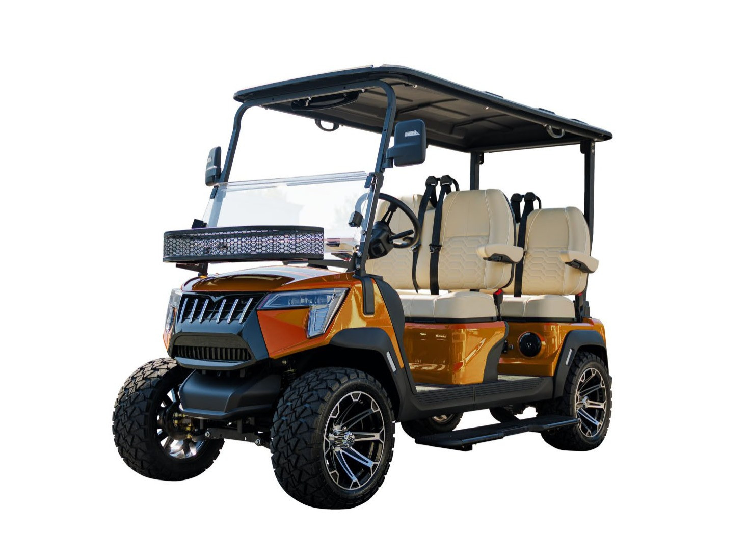Inside, you’ll find spacious forward-facing seating for four, premium upholstery with foldable armrests, and a 10-inch touchscreen featuring Apple CarPlay and Android Auto. From the under-chassis glow lighting to the built-in USB ports and optional sound bar, every detail has been designed to keep you connected, comfortable, and in control.