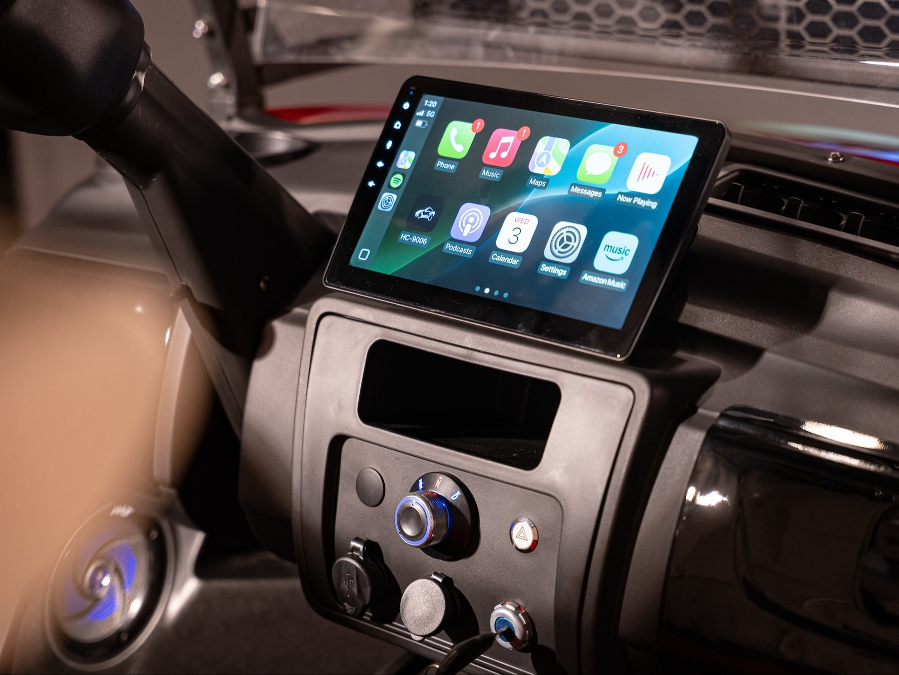 Touchscreen Entertainment Display - 10″ screen with speed, range, Bluetooth, Apple CarPlay, Android Auto & USB ports